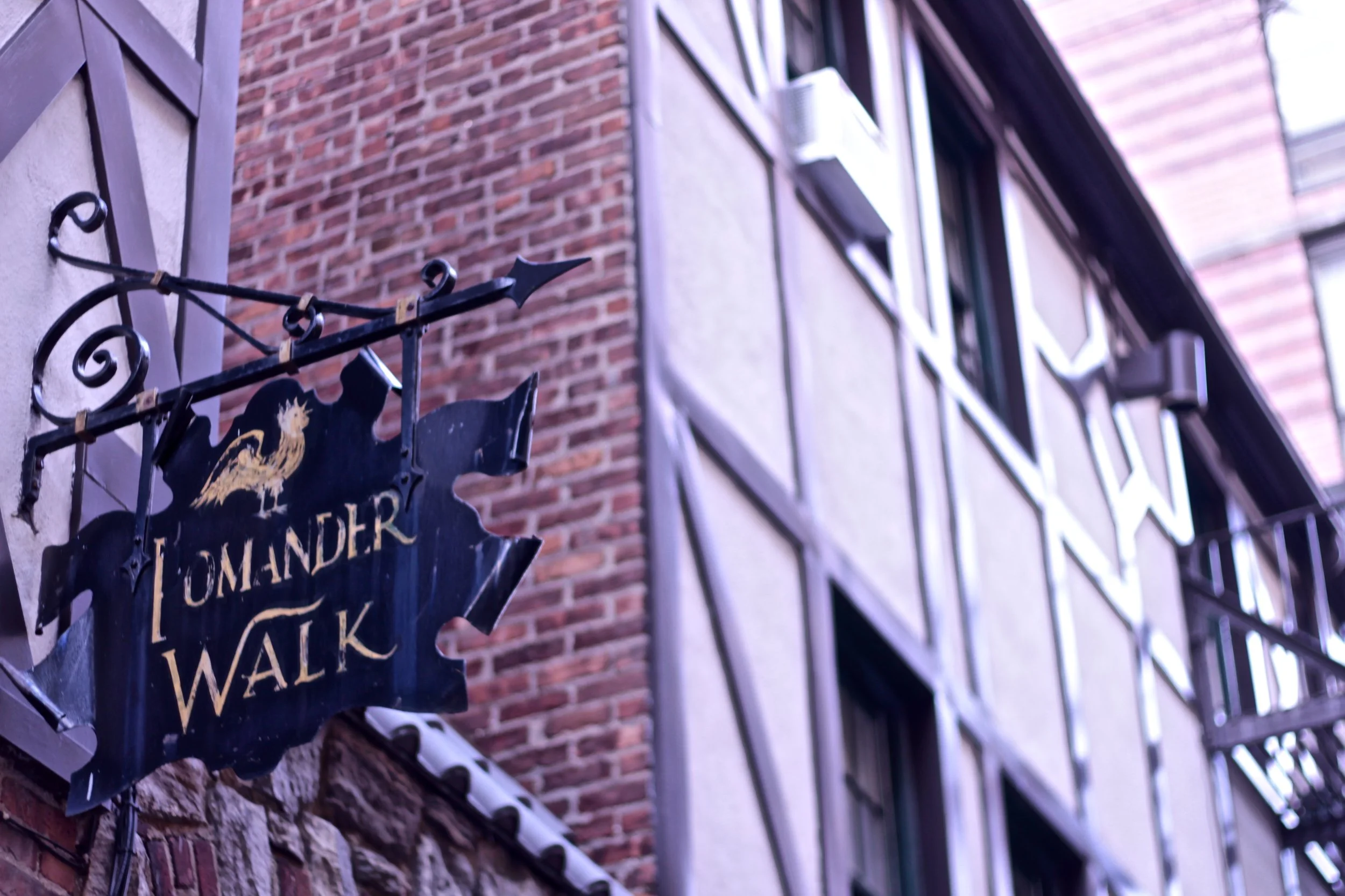 On the block between Broadway and West End Avenue at 94th to 95th streets you can find a curious little Tudoresque walkway. Built in the 1920s, Pomander Walk is nestled amongst the typical buildings of the Upper West Side, but is in no way considered to be typical itself. It boasts a Hollywood beginning, being named for the romantic comedy Pomander Walk, set in our homeland of England and imitating the history that you and I grew up with, though they certainly land on the Disney end of the authenticity spectrum. In fact, in Disney style, it was originally built as more of an attraction by Thomas J. Healy, in order to drum up some cash while waiting for financing for a hotel on the location after a few years, but fortunately for us/unfortunately for him, he passed away before taking the opportunity, and so here we are 95 years later, with a Disney-esque, Tudor style walk, mid-block on the Upper West Side. Interesting (possible) fact - the Hollywood theme may have continued later on, as lots of sites have claimed this was the chosen Manhattan residence of Humphrey Bogart for some time, though I can't find any actual proof of this. We couldn't get in (it's a gated community), but for a peek the other side of the gates check out Scouting NY's blog on the walk.